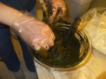 This afternoon my friend Sally came over and helped me dye my hair with henna. The henna smelled nice– like cooked spinach. It was the same green as cooked spinach as well:
