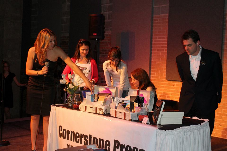 Kristen and Boone draw the names of the raffle winners.(Don’t the raffle prizes look wonderful?)