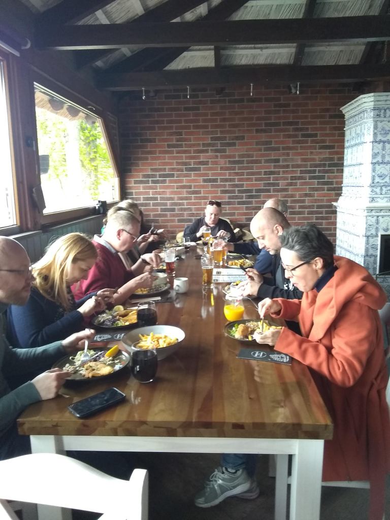 All of this adventuring had made our group hungry, and our organizer(s) had planned for this. We got back in our cars and headed to the village of Tolkmicko and the Fregata restaurant, located on the Baltic. Their specialty was fish, and that is what most of us ordered. Yum!