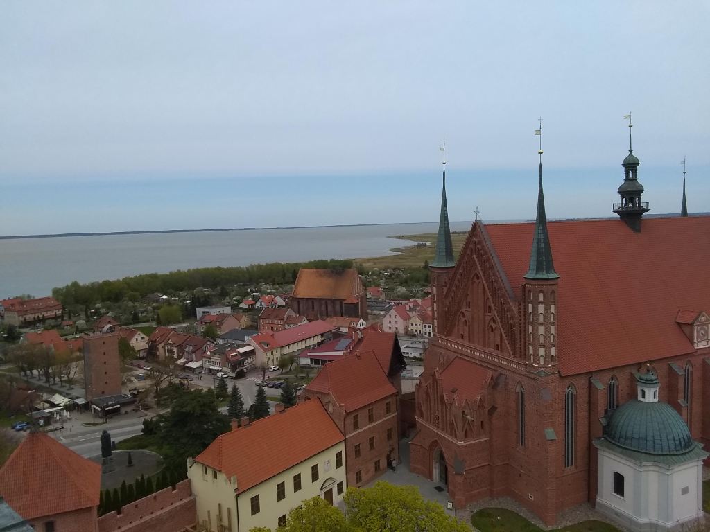 Upon arrival, we went into a walled area that contained a tower, the town’s cathedral, a museum, and the planetarium. Below, you can see the walled area, the tower, and the view from the tower. From the tower, you can see the Baltic and also part of Russia, which looks just like Poland. Borders can be funny that way.