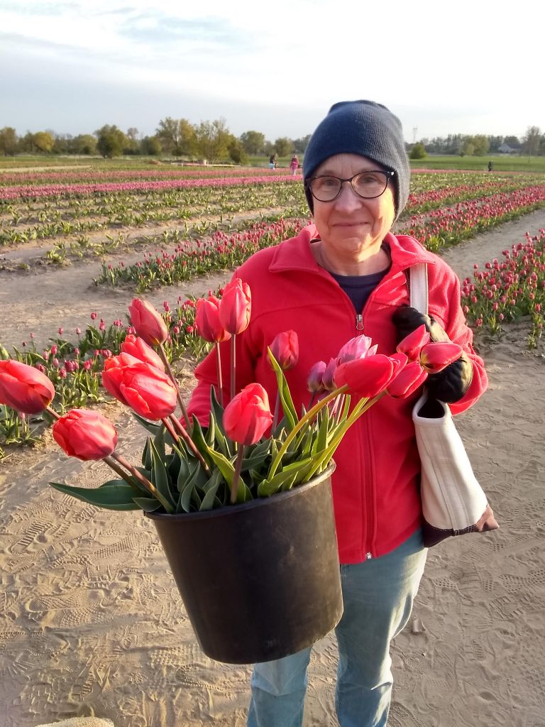 When we all headed to the parking lot, Andy and I assumed our adventure was over –but no! Our last stop was at a pick-your-own tulip field.