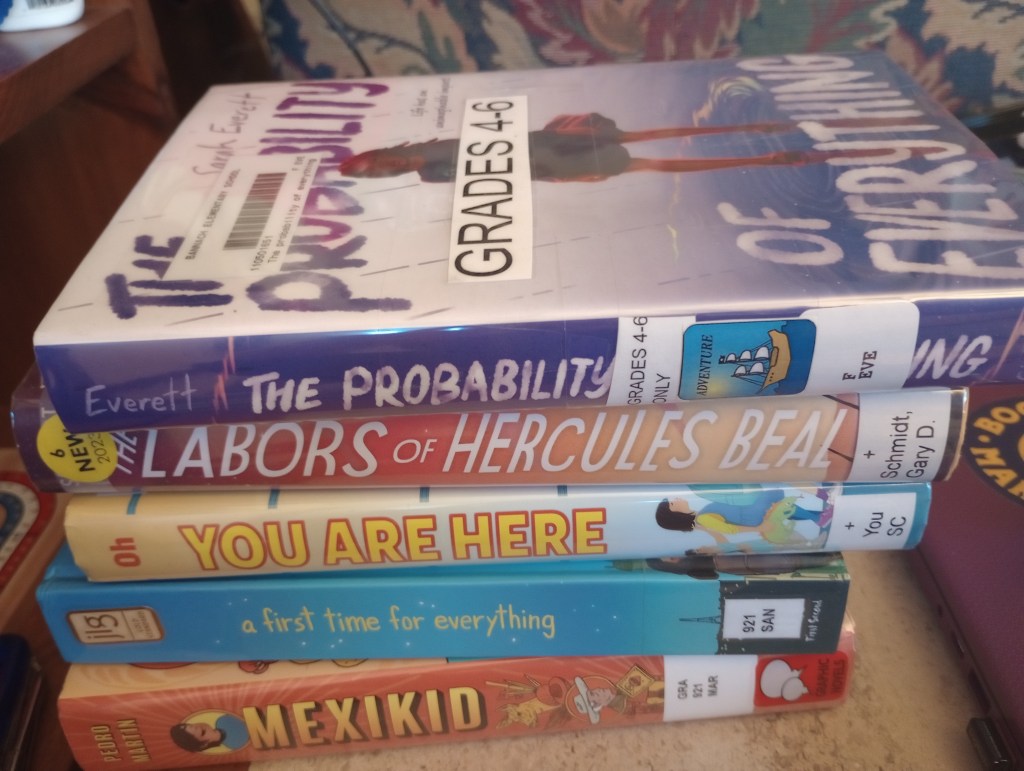So far, my favorite books so far are Joan Schoettler’s The Honey Jar, Dave Eggers’ The Eyes and the Impossible and Sarah Everett’s The Probability of Everything. There are some books also on our contenders list that aren’t pictured above and that I haven’t read yet.