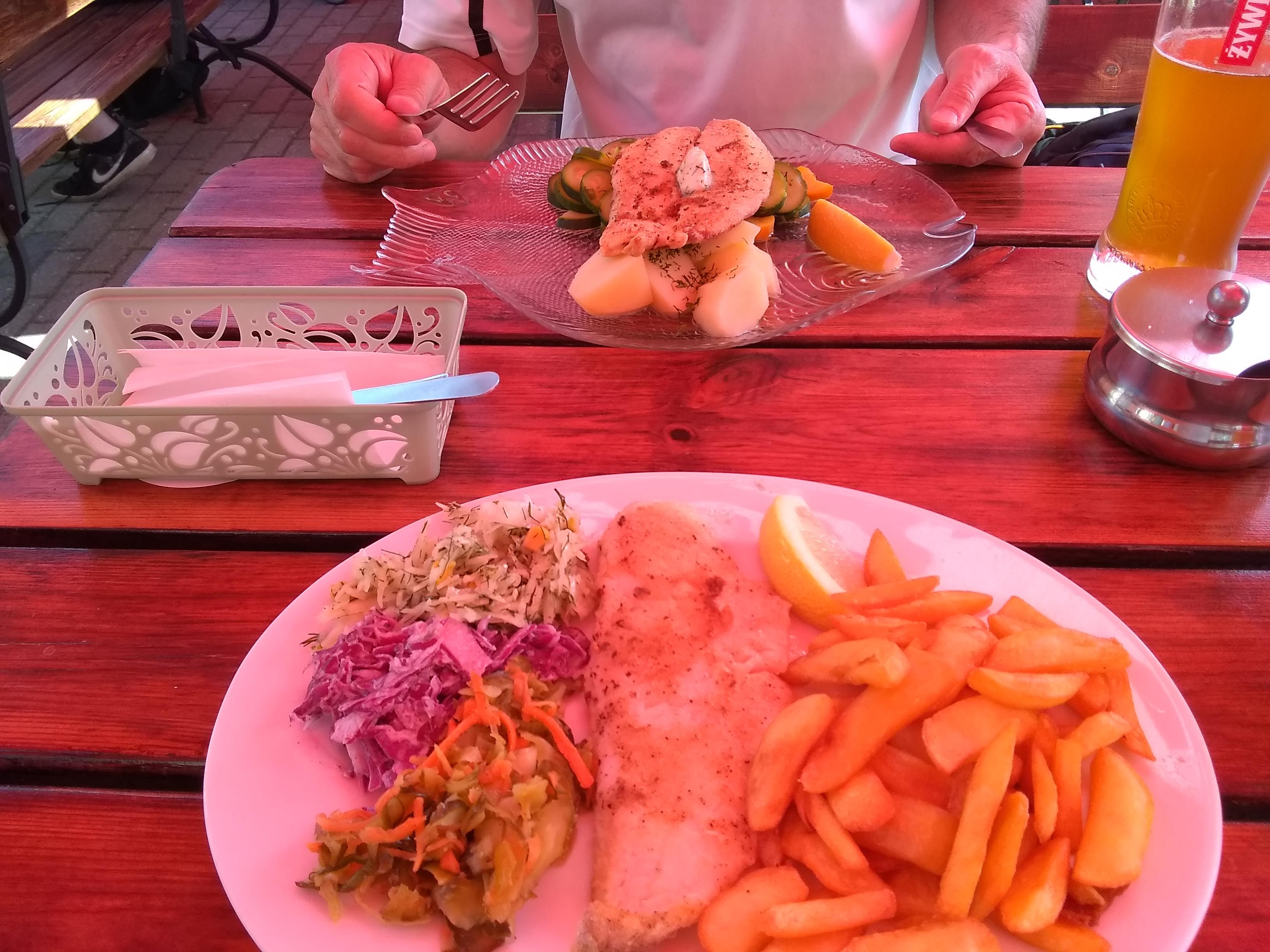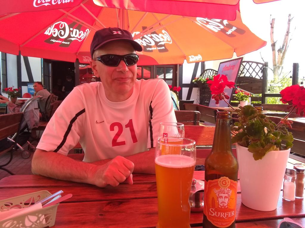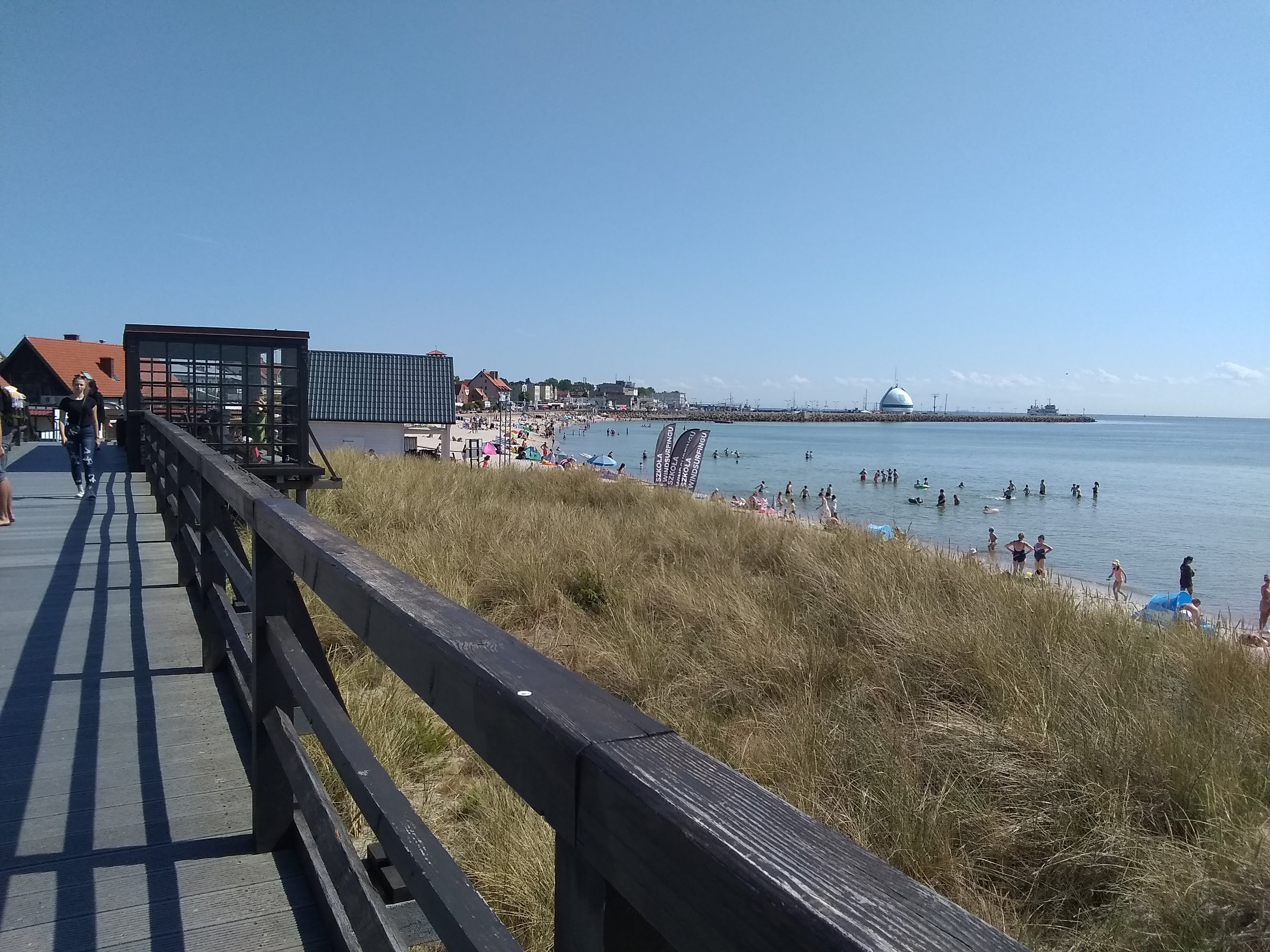 The beaches on the Baltic we’ve visited have been beautiful and not too crowded, although we do usually go on week days. We’ve been lucky with the weather. Once we had our fill of water and sun, we roamed the streets looking for a restaurant with outdoor shaded seating in which to eat, drink, and relax. The place we chose had adequate food and an excellent, local wheat beer.